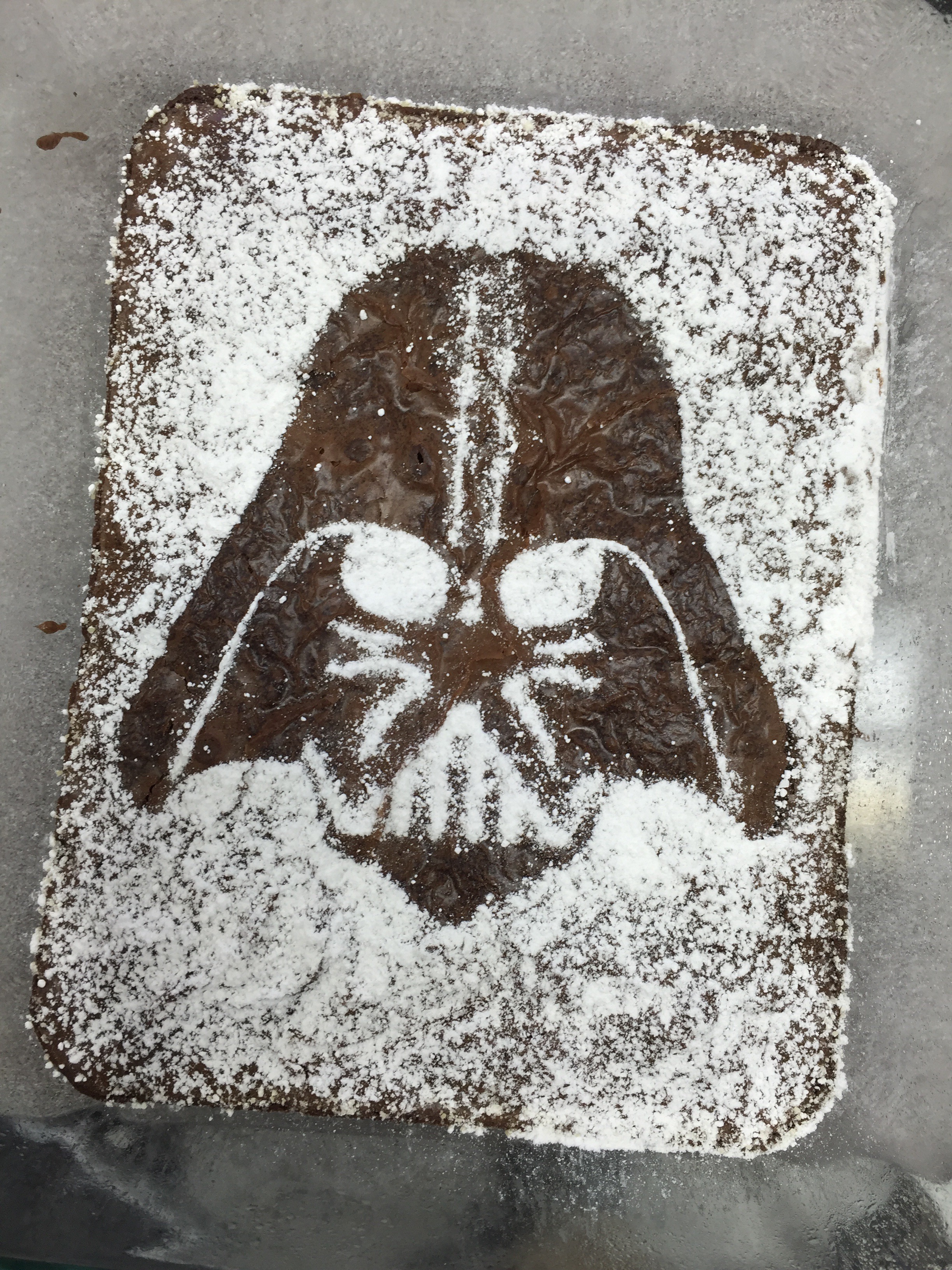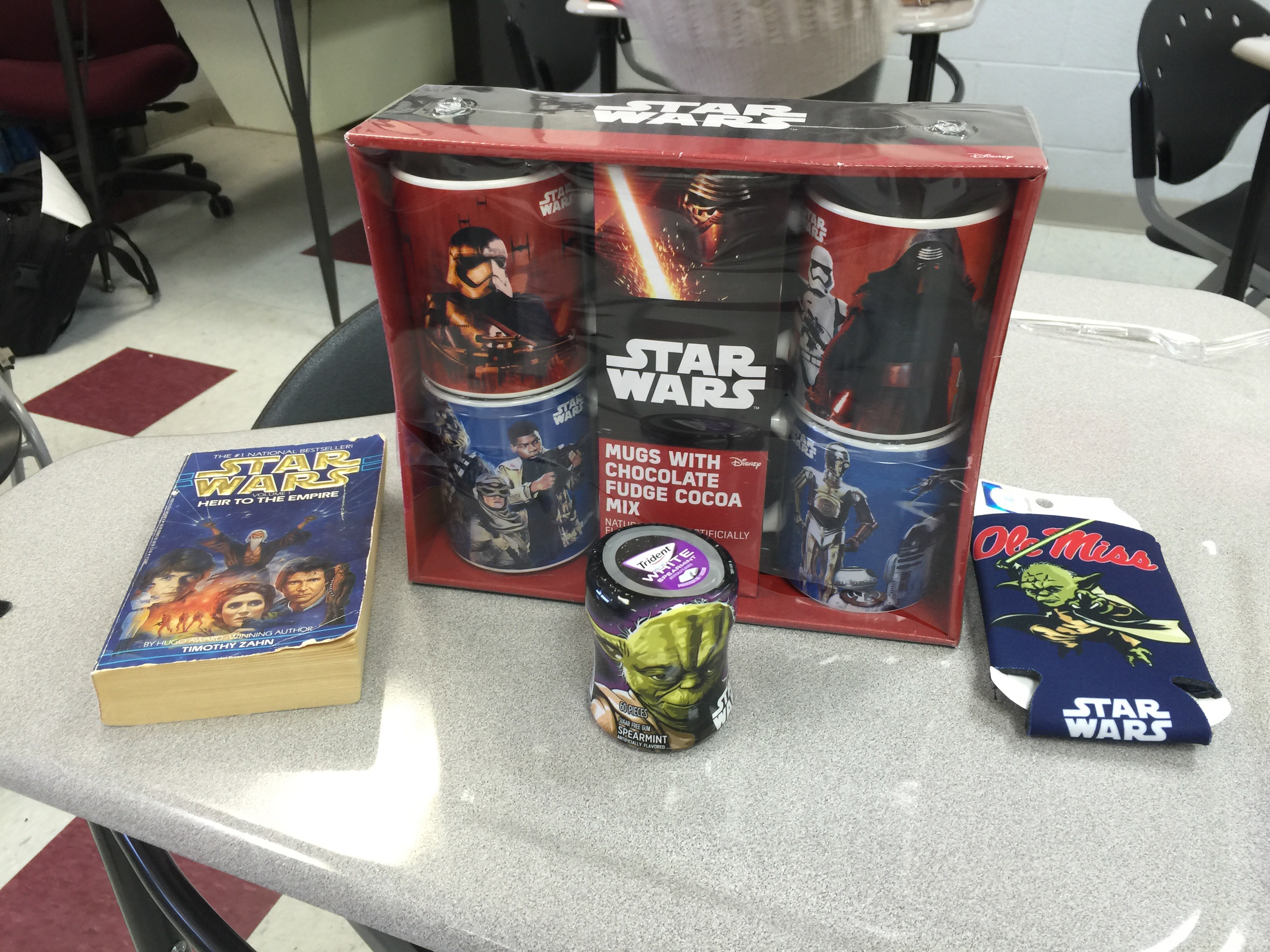 I am hard to sneak up on. But some of my former AP Calculus students did just that last Thursday. They were finished with their first semester of college and I was in my classroom, grading exams (and helping two current AP Calculus students study for theirs). In trickled the former students, one by one, like clowns coming out of a teeny tiny car. I couldn’t believe how many kept coming through the door. They brought snacks and drinks and Star Wars gifts.