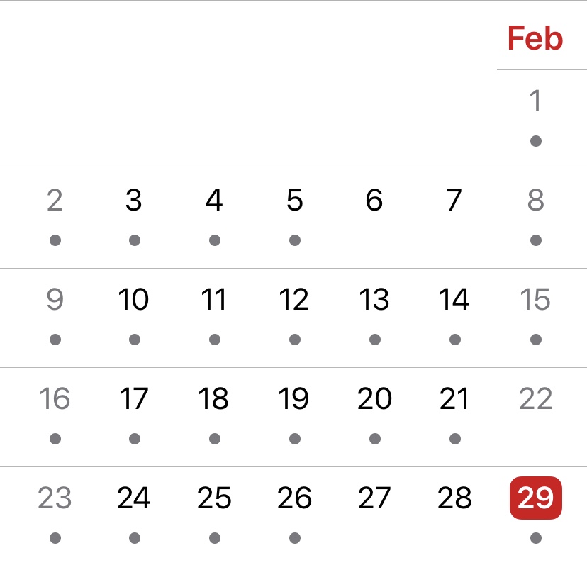 If you are sitting around in any given year, wondering if it’s a Leap Year, all you have to do is divide that year by 4. We have a February 29th this year because 2020 is divisible by 4. How do we know a number is divisible by 4? Look at the last two digits and see if they are divisible by 4. 2036 will be a Leap Year because 36/4 is 9. Divisibility by 4 is not quite as fun as testing for divisibility by 3, and not nearly as quick as checking for divisibility by 5, but it’s not as ridiculous as testing for divisibility by 7.