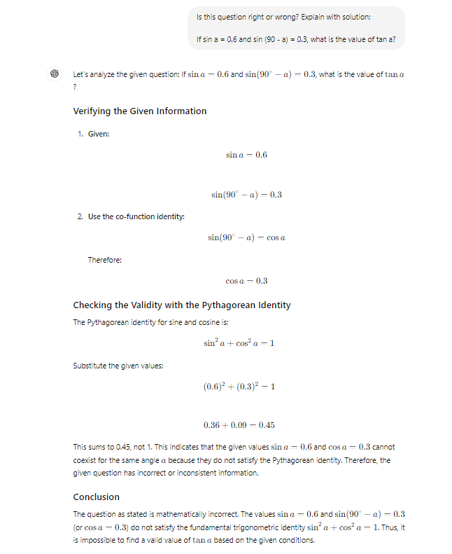 It seems like if you ask ChatGPT the right question, it will be better at giving you the correct answer and for this reason, I will continue be suspicious of any solutions wrought by a machine. Humans, we still need to train our brains! LOL